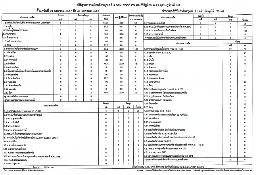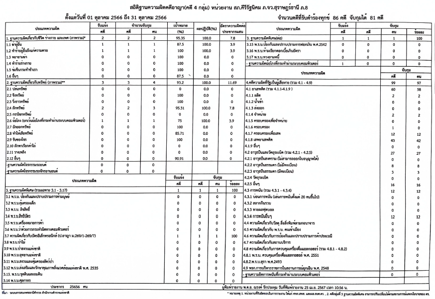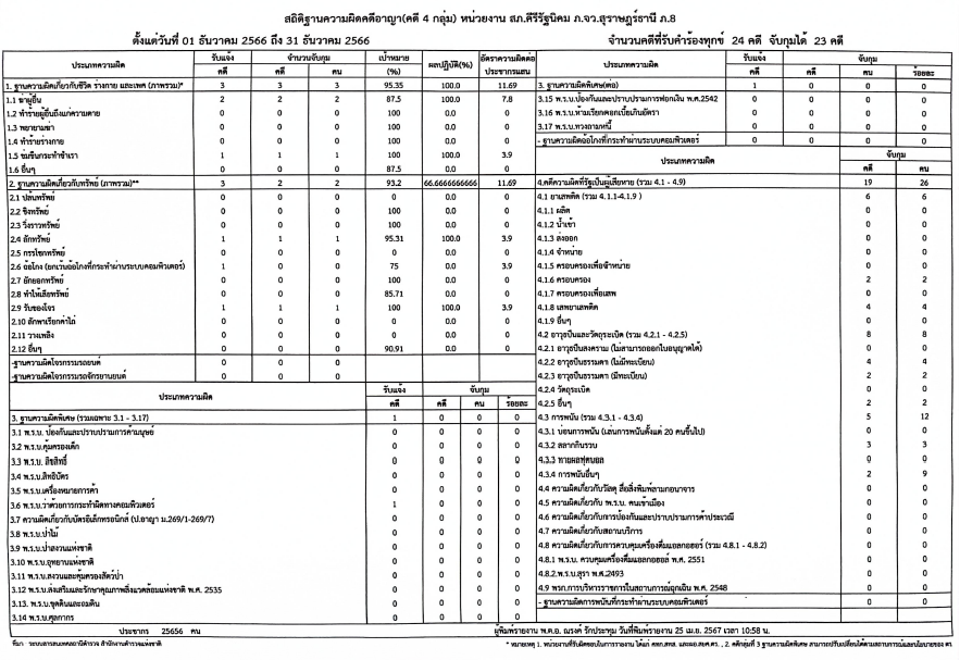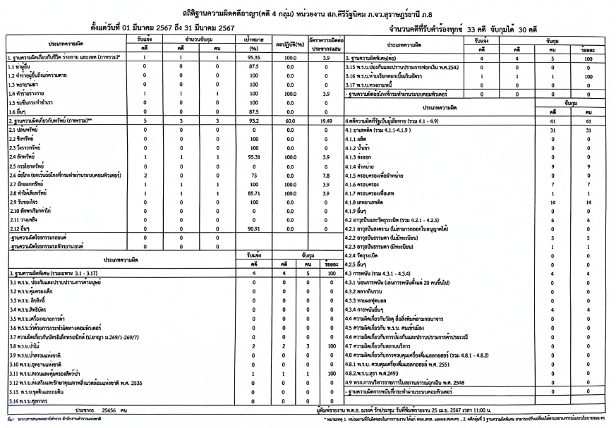 ข้อมูลผลการดำเนินงานของสถานีตำรวจในเชิงสถิติ ด้านคดีอาญา4กลุ่ม ตามระบบ CRIME(แยกรายเดือน)